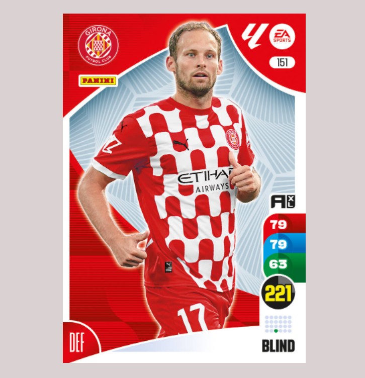 Carta básica original de BLIND del Girona FC, número 151 de la colección de Adrenalyn XL 24/25 La Liga de Panini.