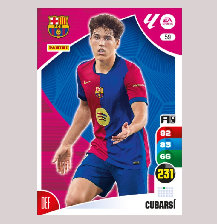 Carta básica original de CUBARSÍ del FC Barcelona, número 59 de la colección de Adrenalyn XL 24/25 La Liga de Panini.