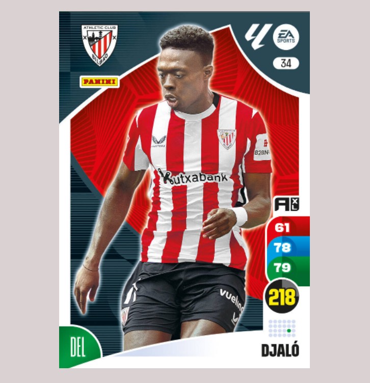 Carta básica original de DJALÓ del Athletic Club Bilbao, número 34 de la colección de Adrenalyn XL 24/25 La Liga de Panini.