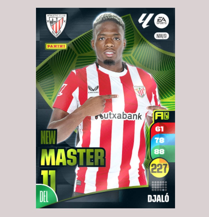 Carta paralela original de DJALÓ del Athletic Club Bilbao de la sección NEW MASTER 11, número NM/9 de la colección de Adrenalyn XL 24/25 La Liga de Panini.
