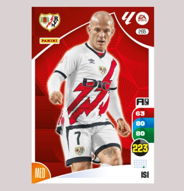 Carta básica original de ISI del Rayo Vallecano, número 265 de la colección de Adrenalyn XL 24/25 La Liga de Panini.